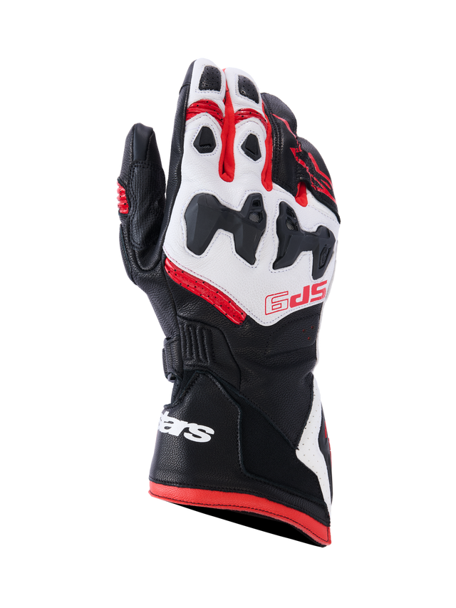 Engineered for racing and sport riders, the SP-9 Gloves combine MotoGP-derived SP-R divided knuckle technology with full grain goat leather construction for maximum protection and versatility. CE Level 1 certified with perforated backhand ventilation, they deliver track-proven safety with optimized flexibility. Pre-shaped finger construction, patented finger bridge, long double closure cuff, and anatomical grip inserts provide precision fit and enhanced control on and off the track.