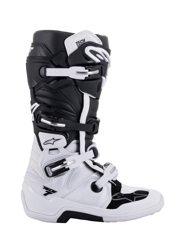 Alpinestars Tech 7 Boots, Motocross Racing Boots, Black and White, Multiple Buckle Closure System, Textured Grip Sole, Padded Perforated Upper for Ventilation, Robust Angular Design for Protection