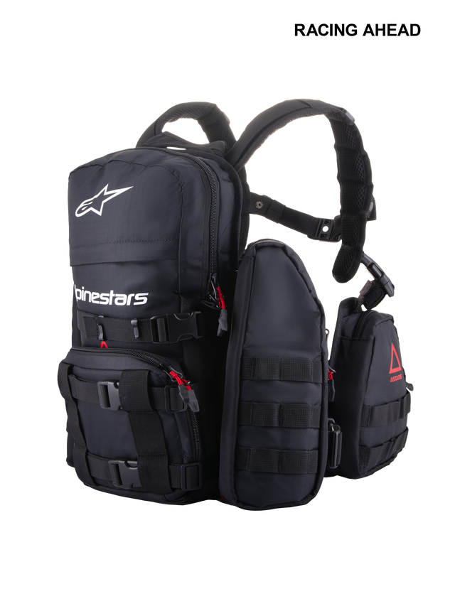 Ergonomic shoulder straps with perforated foam padding and mesh panels for an optimized airflow, adjustable and removable chest strap and the Alpinestars’ magnetic chest buckle for a fast and secure adjustment.