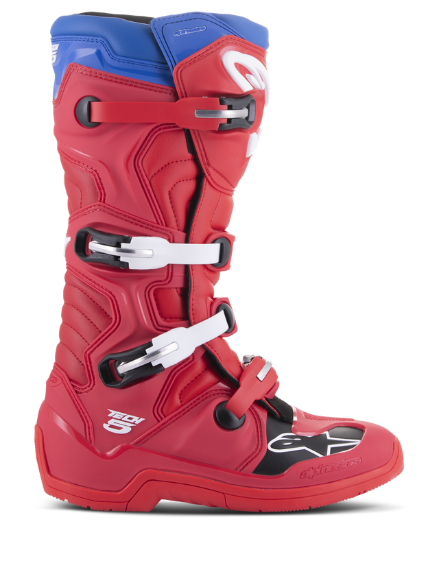 In de nasleep van de enorm succesvolle en iconische Tech 10 en Tech 7 is de nieuwe Tech 5 een geavanceerde laars met een constructie van meerdere materialen en meerdere panelen die de line-up van Alpinestars van toonaangevende motocross- en off-road laarzen verder versterkt. Met een innovatief microvezel chassis, dat extreem duurzaam en lichtgewicht is, een mediale biomechanische pivotsysteem voor uitstekende niveaus van ondersteuning en stabiliteit en uitgebreide accordeon flexzones, biedt de Tech 5 prestatiepasvorm en hoge niveaus van comfort en duurzaamheid.